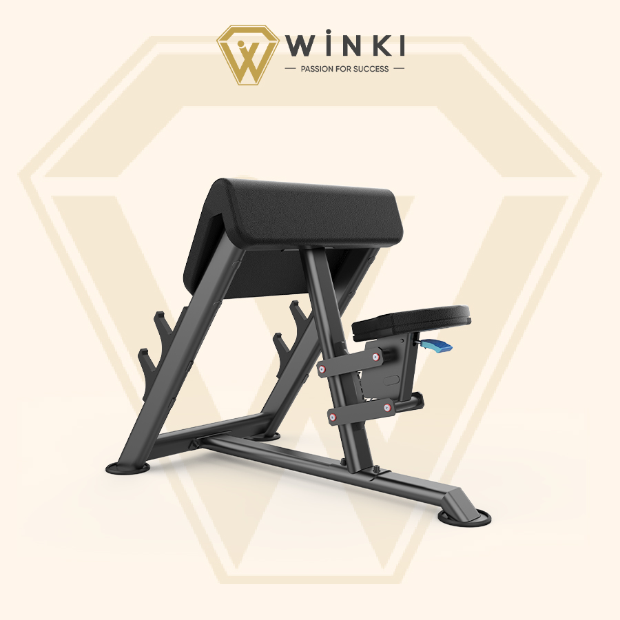- Ghế tập tay trước Preacher Curl dùng đòn tạ chữ Z hiện đại, giúp nâng cao hiệu quả khi tập luyện.